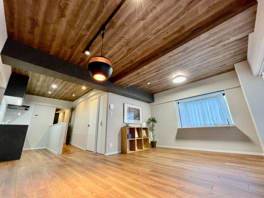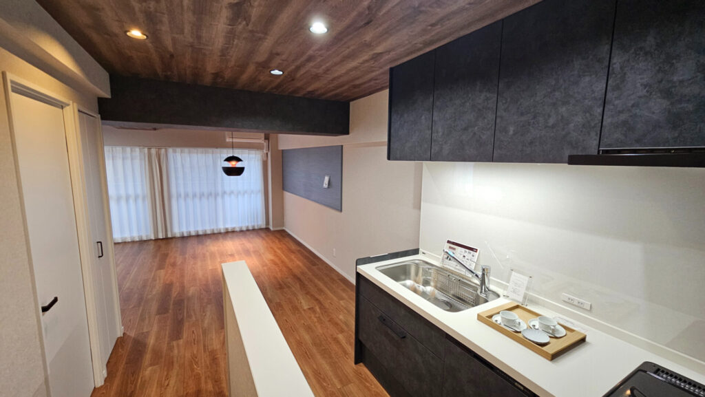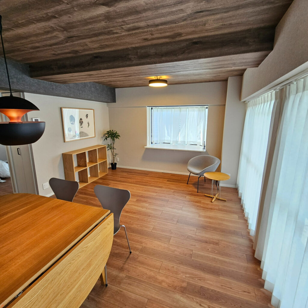 大通りから1本入った閑静な住宅街にあるマンションです。フルリノベーションを施し、間取りも4DKから2LDKに変更しました。