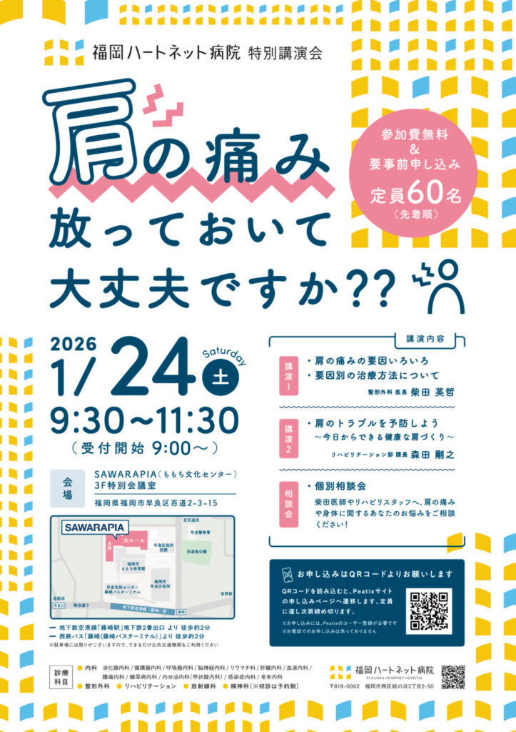 | イベント名 | 福岡ハートネット病院 特別講演会 「肩の痛み放っておいて大丈夫ですか?」 |