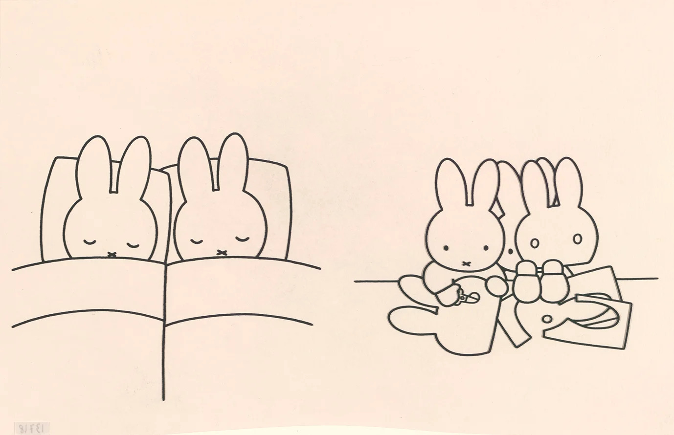 本展では、初来日となる『うさこちゃんおとまりにいく』(1988年)、『うさこちゃんのだいすきなおばあちゃん』(1996年)の原画をはじめ、ミッフィーシリーズ全32作品の原画やスケッチなど約200点が日本で初めて一堂に会します。