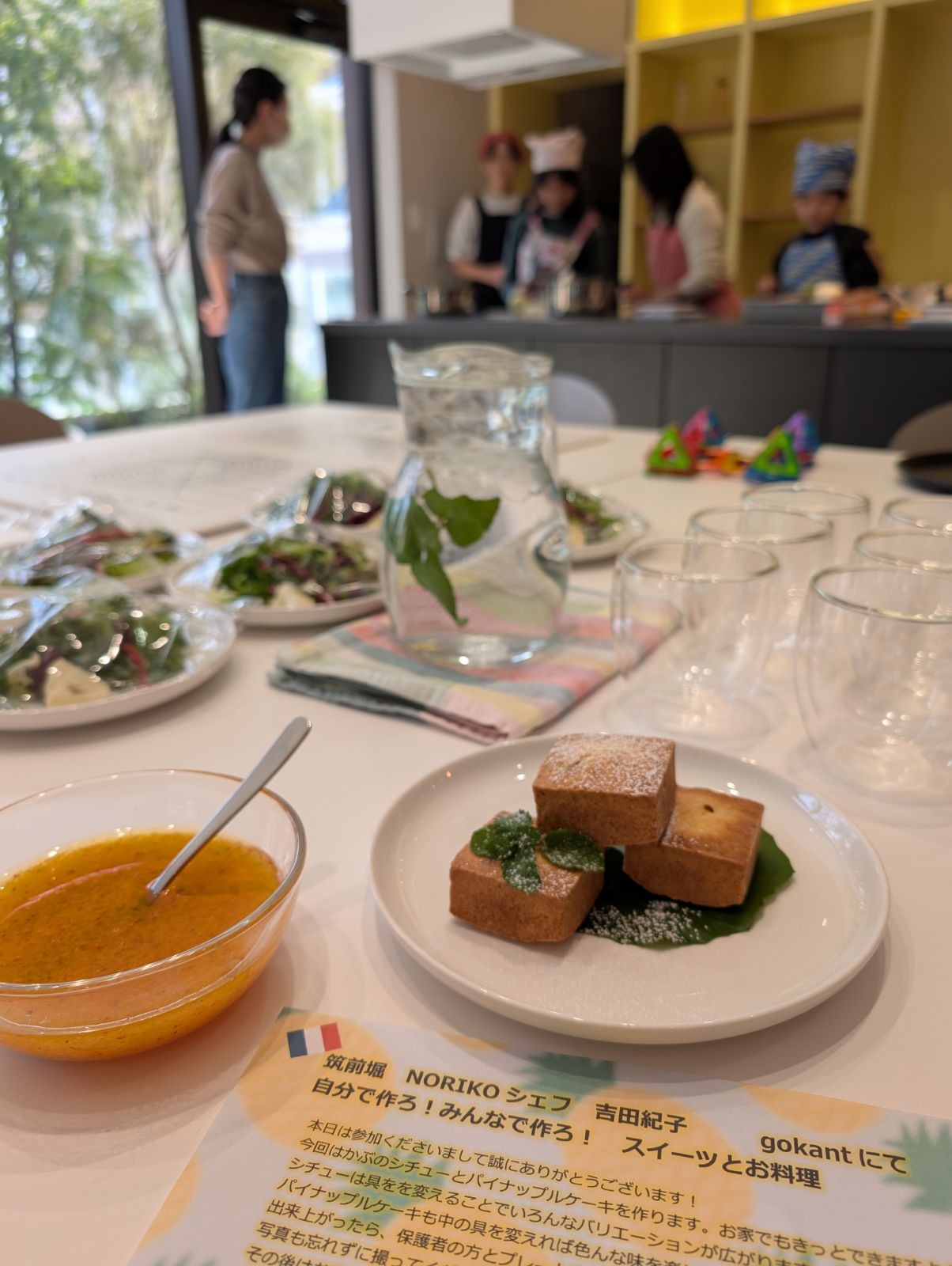 みんなで作ったお料理とスイーツは、自分と保護者の方の分を盛り付けして、お迎えに来てくれた保護者の方に、写真を撮ってもらって、その後は一緒に食べましょう。