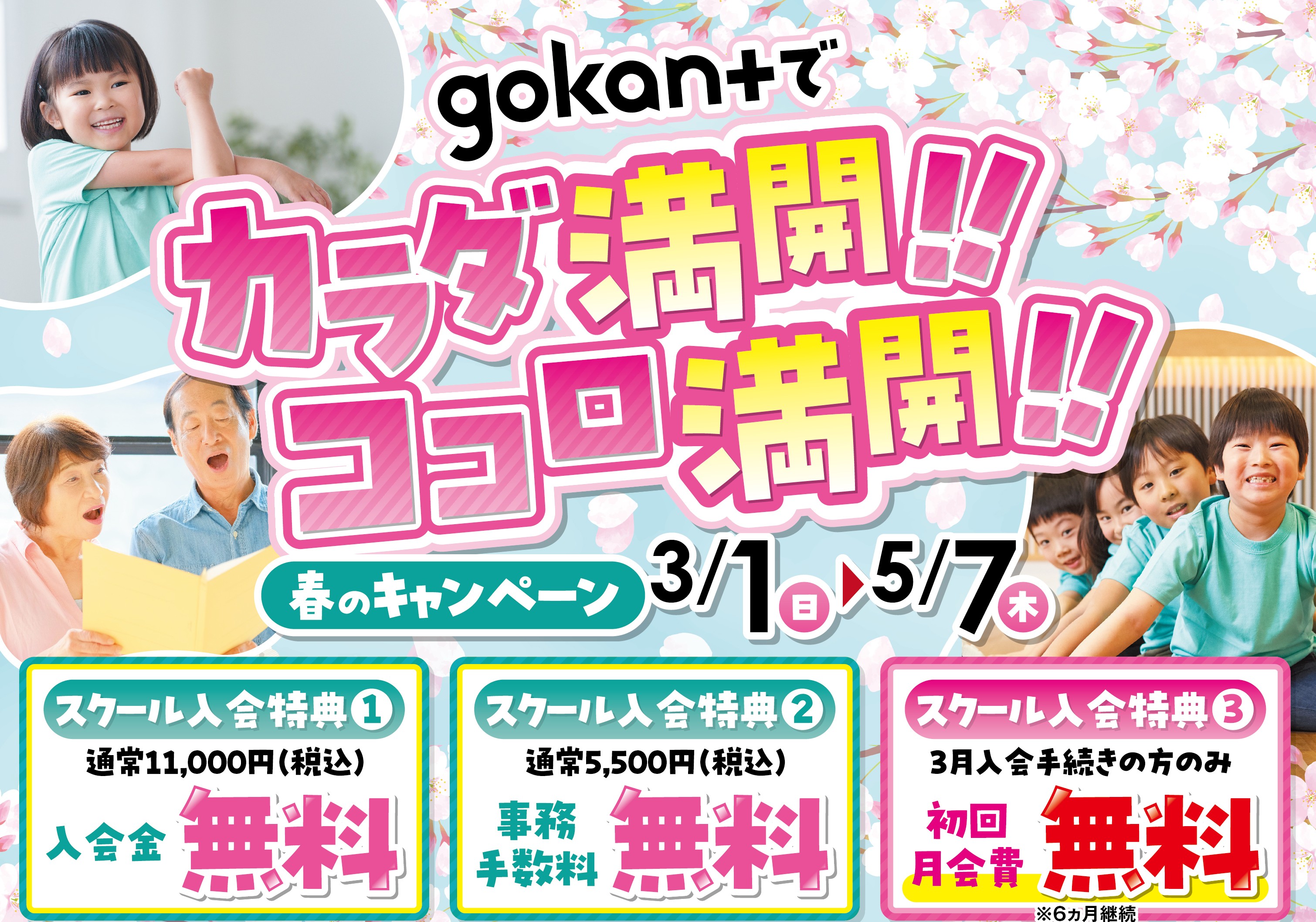3月中入会申込の方限定: スクール1ヵ月分の月会費0