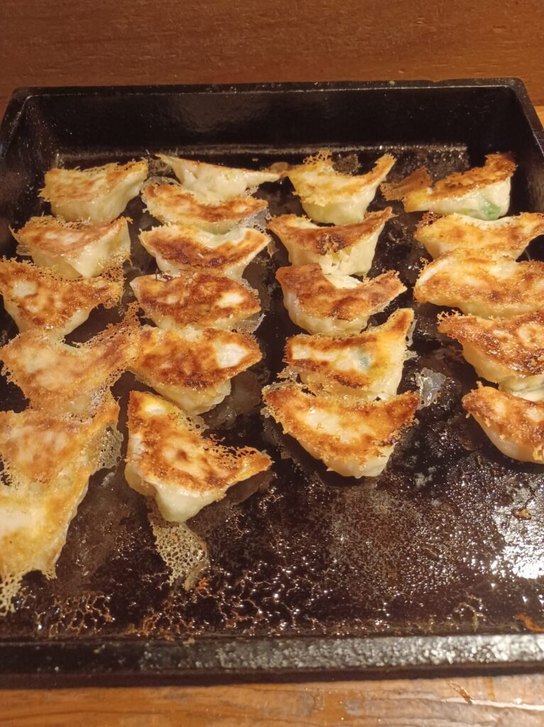 パリッと焼き上げられた羽根つきの薄皮にジューシーな餡。一口噛めば、肉の旨みと香ばしさが口いっぱいに広がりますよ。