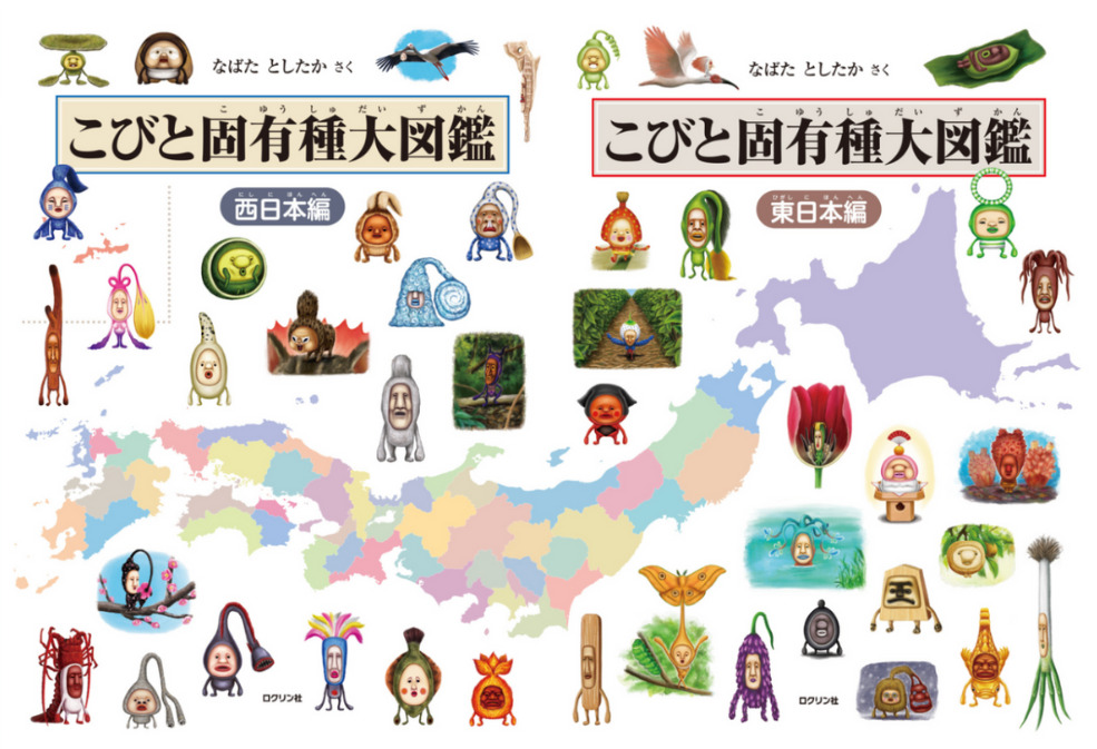 書籍『こびと固有種大図鑑 東日本編』と『こびと固有種大図鑑 西日本編』では、全国47の都道府県それぞれに生息している「固有種コビト」を集めて紹介しています。