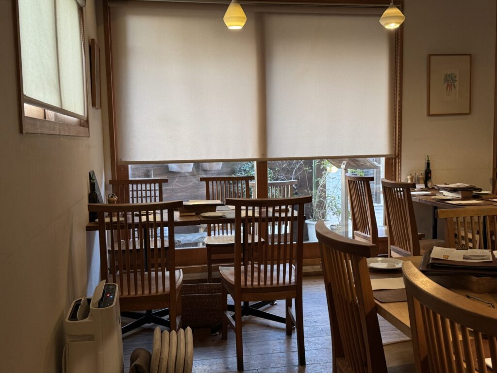 店内はカウンター席とテーブル席2つの全13席というアットホームな空間で、明るい雰囲気が魅力のお店でもあります。