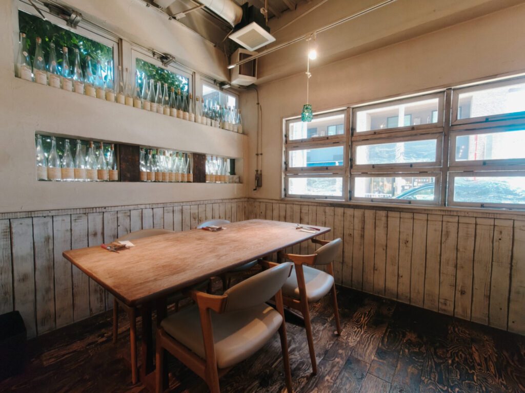 アパートの1階をおしゃれにリノベーションした店内は、2人がけのテーブル席が2つと、外にテラス席が1つだけというこぢんまりとした空間。
