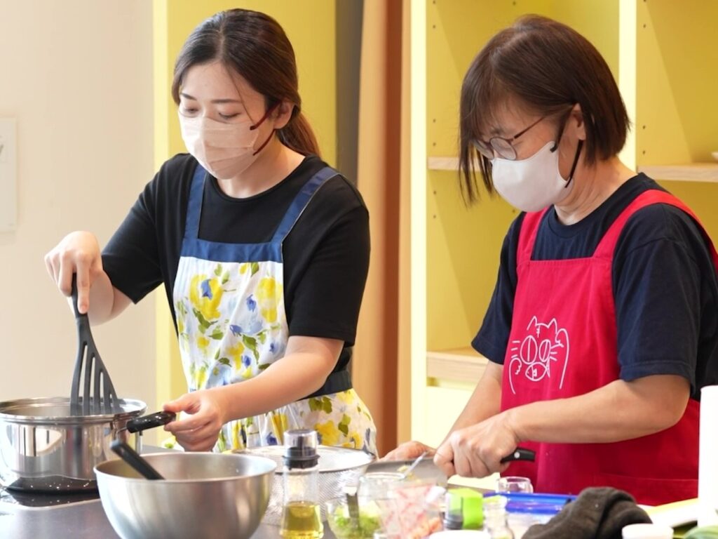 レシピを一緒に見ながら手を動かし、合間には子育てや夫婦のことを気軽におしゃべり。