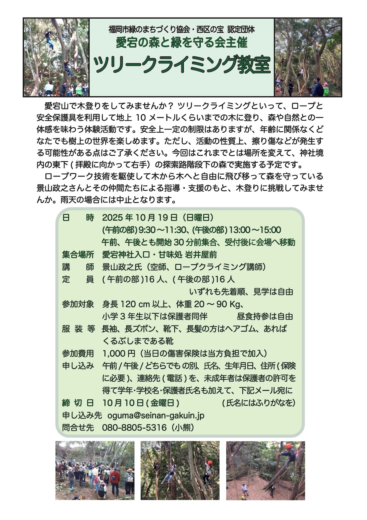 西区の宝・福岡市地域の森づくり活動認定団体「愛宕の森と緑を守る会」では、
