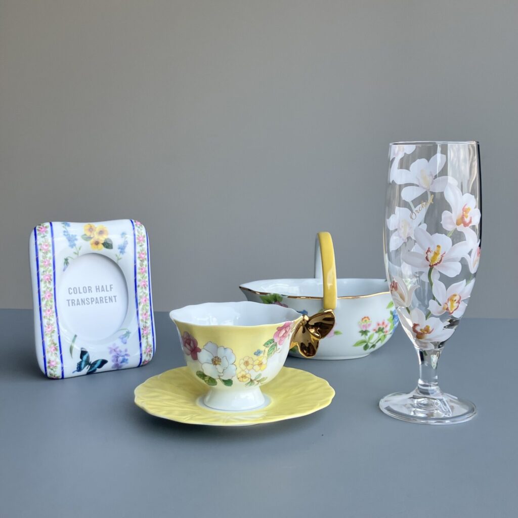 制作体験後は、実際にポーセラーツの作品を用いてお茶会をします。(講師の作品を使用します。)可愛らしく彩られた器やカップと共に、皆さんで穏やかな空間で和やかにお話を楽しみませんか?