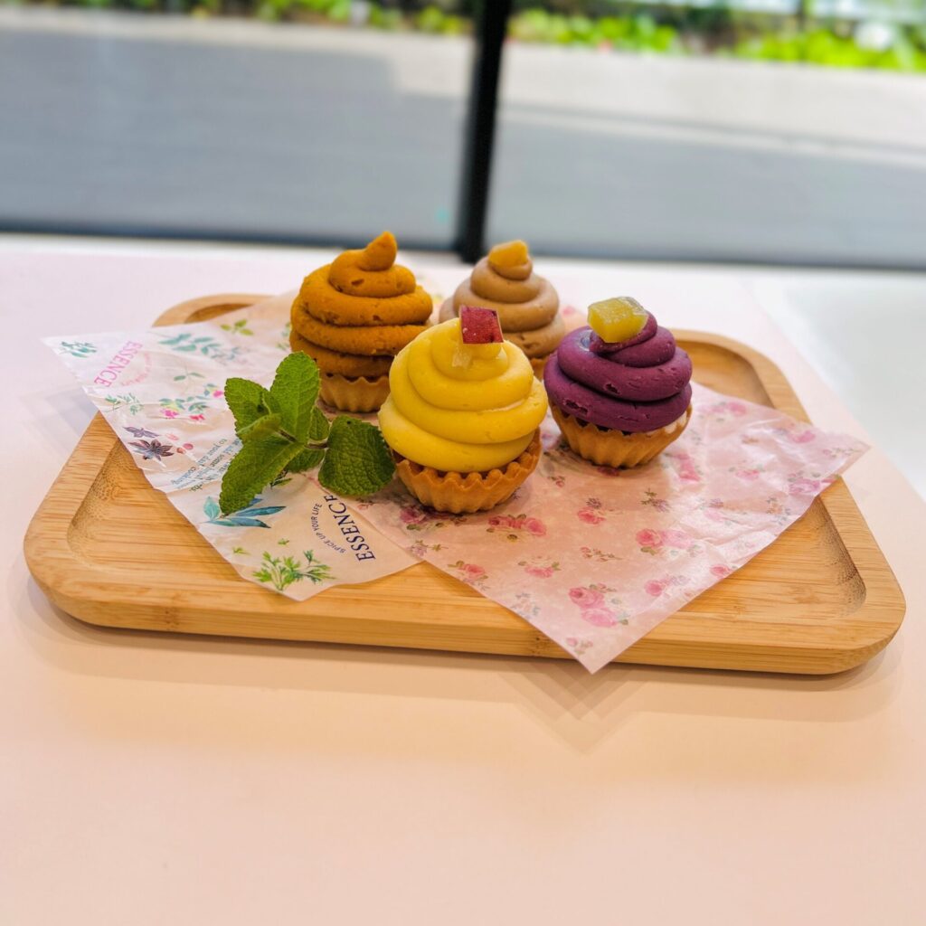 出来上がったら、その他の食材と一緒に好きなように盛り付けをしてスイーツプレートを完成させましょう!一人一皿ずつ作ります。あとはお楽しみの試食タイム🎵